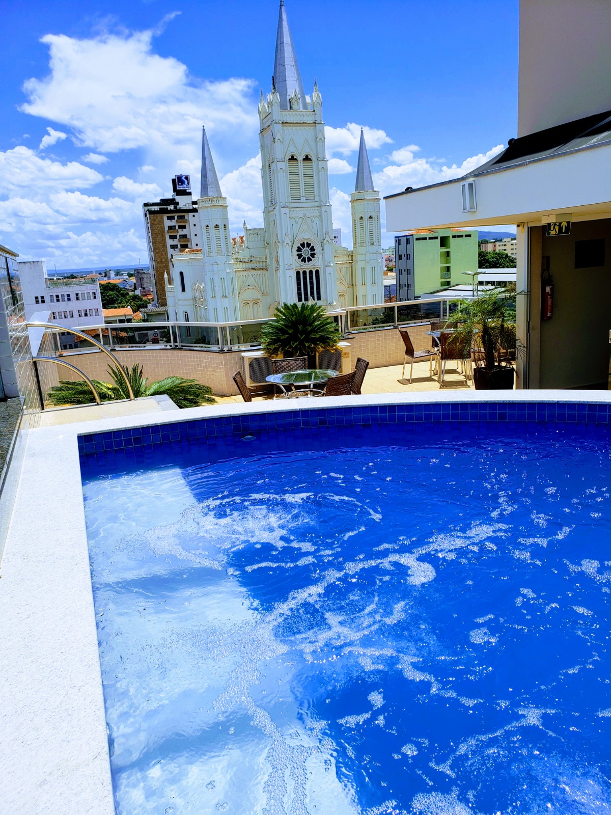 Nossa acomodação mais charmosa. Além de todo o conforto da linha Super Luxo, possui uma varanda exclusiva com vista privilegiada para a Catedral Nossa Senhora Aparecida.